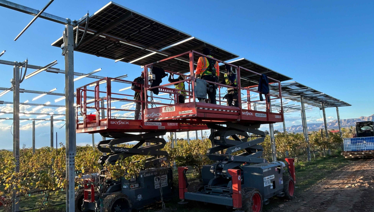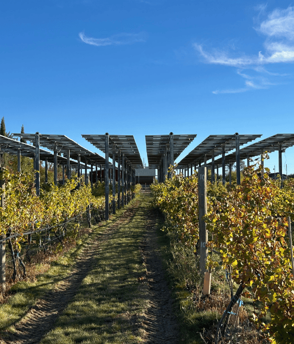 The Agri-PV structure is positioned above grapevines, allowing natural light to reach the canopy while generating renewable energy on site. The installation is part of an ongoing scientific effort to better understand vineyard performance under Agri-PV conditions.