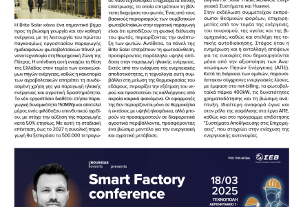 Άρθρα | Τα νέα μας | Τύπος | 14 Feb. 2025 Αναφορά του περιοδικού INDUSTRY στη λειτουργία του εργοστασίου της Brite Solar στην Πάτρα Navigation