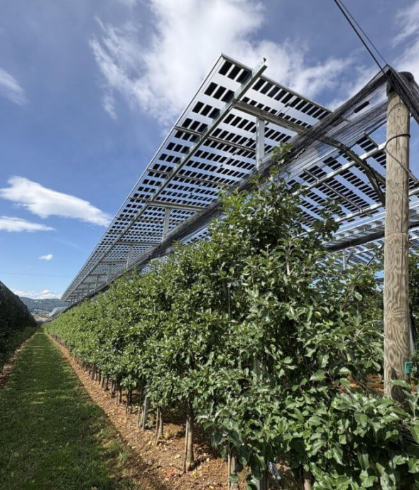 The system provides shade that reduces heat stress on the orchard while mitigating risks from frost and hail. Fruit quality improves, as natural thinning produces larger first-class apples with less sunburn damage. Farmers benefit from energy independence through on-site solar generation that lowers electricity bills, while partial shading also reduces evaporation and irrigation needs.