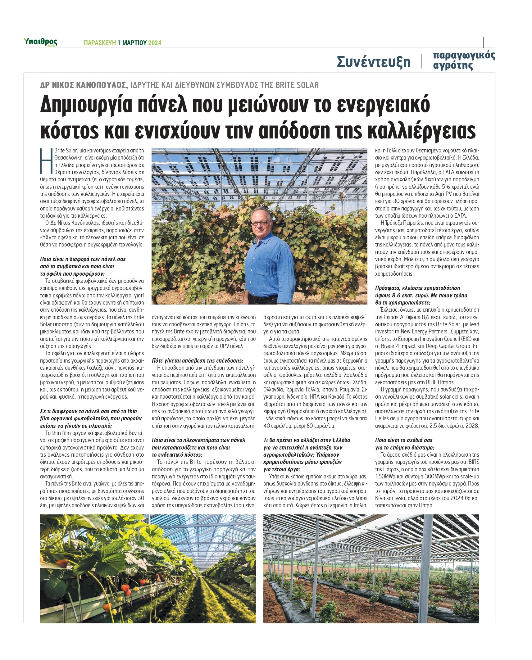 Ύπαιθρος Χώρα Συνέντευξη, ολοσέλιδη στην εφημερίδα